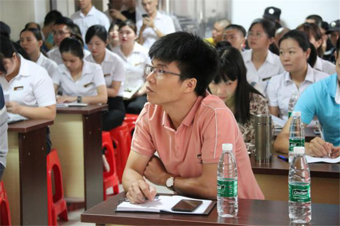 授课正式开始,由谭剑华讲授第一课程——《项目管理扭亏为盈》。雅生活物业公司广州公司顺德雅居乐花园物业服务中心经理谭剑华,带来了长达3个小时的物业管理课程。谭剑华经理以实际案例导入,用一张报表的数据分析引发学员思考,从项目管理的本质和工作认识出发,对塑团队、抓品质、提收入、降成本、强关系五大方面进行深入讲解。