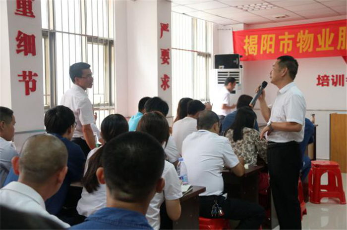 为进一步响应国家和广东省行业协会的号召,共谋行业全新发展,合力推动揭阳市物业管理行业的创新发展和提高服务水平,推动广东省物业管理行业的健康发展,向广大业主提供更有价值、更便捷、更满意的服务。2019年7月10-11日,雅生活对口帮扶揭阳物业管理培训班在揭阳普宁开课,此次培训班由普宁市万诚物业管理有限公司协助开办,来自揭阳全市近百位物业企业代表、项目经理及各专业口物业工作者参加本次培训,系统地学习了雅生活物业管理、团队建设、催费技巧、物业法律法规、服务意识等课程。揭阳市房地产协会会长卓锐、雅生活集团物业服务公司品质中心副总经理苏岭、深圳公司副总经理陈文养、揭阳市房地产协会副秘书长魏晓涛及普宁市万诚物业管理有限公司陈梓雄总经理等莅临培训现场。