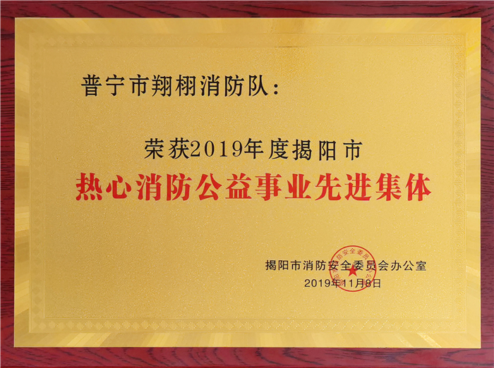 广东省消防安全委员会对26个“热心消防公益事业先进集体”、29名“热心消防公益事业先进个人”进行了现场表彰。普宁翔栩专职消防队成绩突出,荣获“热心消防公益事业先进集体”。