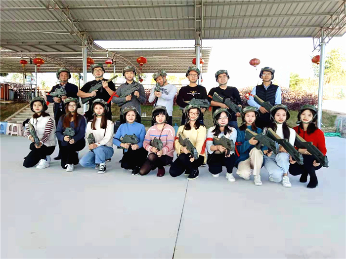 经过30分钟的路程到达目的地,2点整全体成员准时集合。在教官的带领下,我们很快开始今天拓展活动中第一个项目——真人CS枪战。首先分为红绿两队,通过战斗角色的扮演和团队协作,红绿双方轮流保卫旗子。游戏规则讲解结束后,大家都显得神采奕奕,精神饱满,戴上头盔拿起武器迅速进入战场开始比赛。