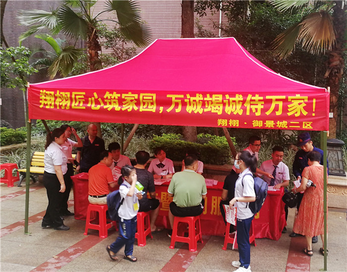 今年6月是全国第19个“安全生产月”,活动主题为“消除事故隐患,筑牢安全防线”。翔栩地产、万诚物业紧扣主题、围绕主题,采取多形式、多样化、全方位的安全生产宣传教育活动。本次活动在翔栩地产、万诚物业管理服务的七个住宅小区(包括翔栩·万泰城、翔栩·御景城一、二、三区、翔栩·帝景城、翔栩丹桂苑等)如火如荼地开展,通过展板展示、现场咨询、发放资料等方式,积极向住户、员工宣传安全知识。现场宣传安全生产观念,普及安全生产知识,发放关于拒绝高空抛物、消防安全、安全用电等方面的宣传资料2000余份,现场接受安全咨询500余人次。