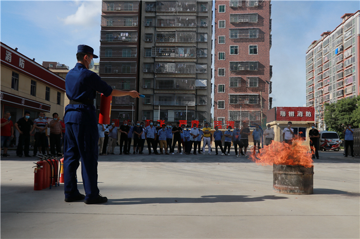 为积极响应全国“安全生产月”活动,进一步增强居民的消防安全意识,万泰集团翔栩消防队紧紧围绕“消除安全隐患,筑牢安全防线”主题,于6月22日下午,联合流沙南街道办、党工委组织治安巡防队、辖区部分商户共50余人开展消防安全知识培训及实际演练活动。
