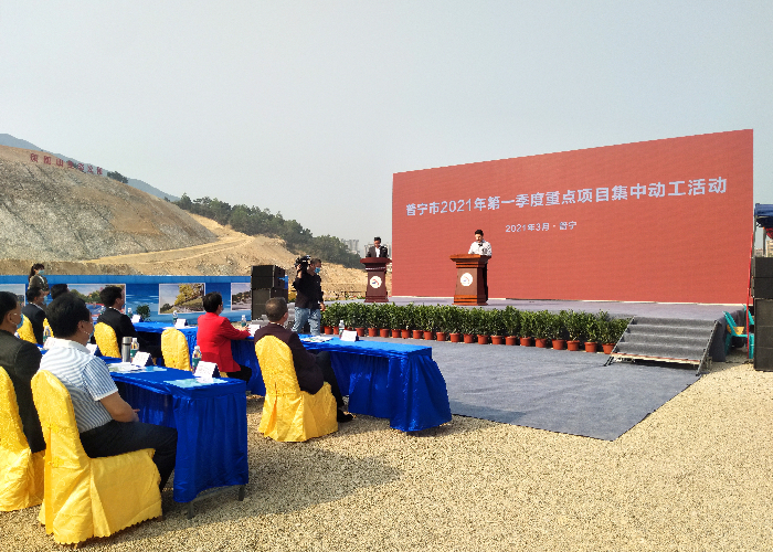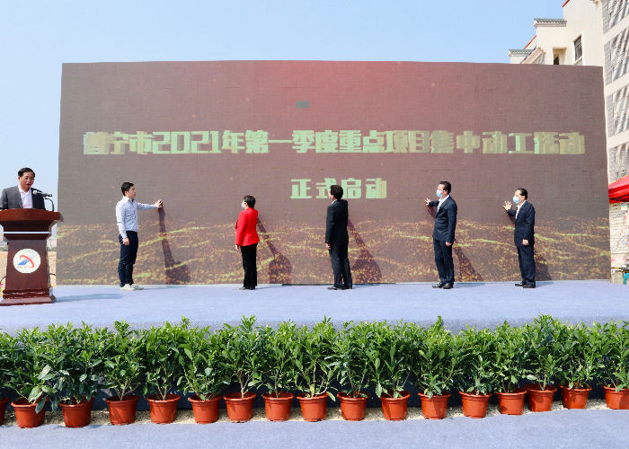 动工仪式由黄光胜副市长主持。市委副书记、市长黄锐亮在会上代表市委市政府在揭阳市2021年第一季度重点项目集中动工活动上报告我市重点项目开工情况。普宁市第一季度动工重点项目17个,总投资112.21亿元,涵盖宜居城乡、现代产业、交通运输等多个领域。这些重点项目的动工建设,有利于进一步优化产业结构,补齐基础设施短板,加速形成助推普宁经济发展的增长极和新引擎。