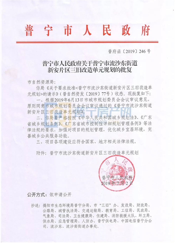 据了解,近日由广东新长安建筑设计院有限公司编制的《普宁市流沙东街道新安片区三旧改造单元规划》已于2019年7月2日获得市政府批复。
