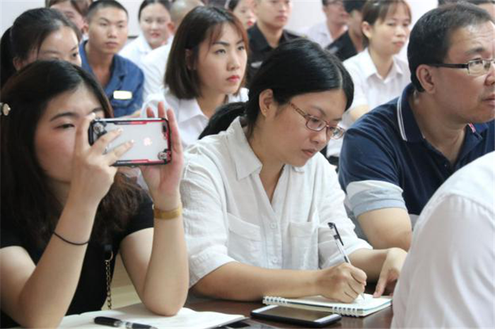 由廖雪琳讲授第三课程——《物业费催缴技巧》。物业费由什么构成?业主不缴费的原因是什么?如何高效催缴物业费?雅生活物业服务公司深圳公司从化片区区域总监廖雪琳带来的课程“干货”满满,将物业费催缴“小秘诀”毫无保留地分享给大家。廖雪琳经理不断调动学员参与互动,启迪学员思维,现场的学员们听的津津有味,积极踊跃回答提问,听课笔记更是写得满满的。